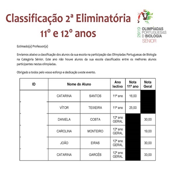 Muito embora não tenhamos classificados entre os melhores alunos participantes nestas olimpíadas, fica aqui uma nota de parabéns aos concorrentes que tão dignamente representaram o Agrupamento nesta competição.