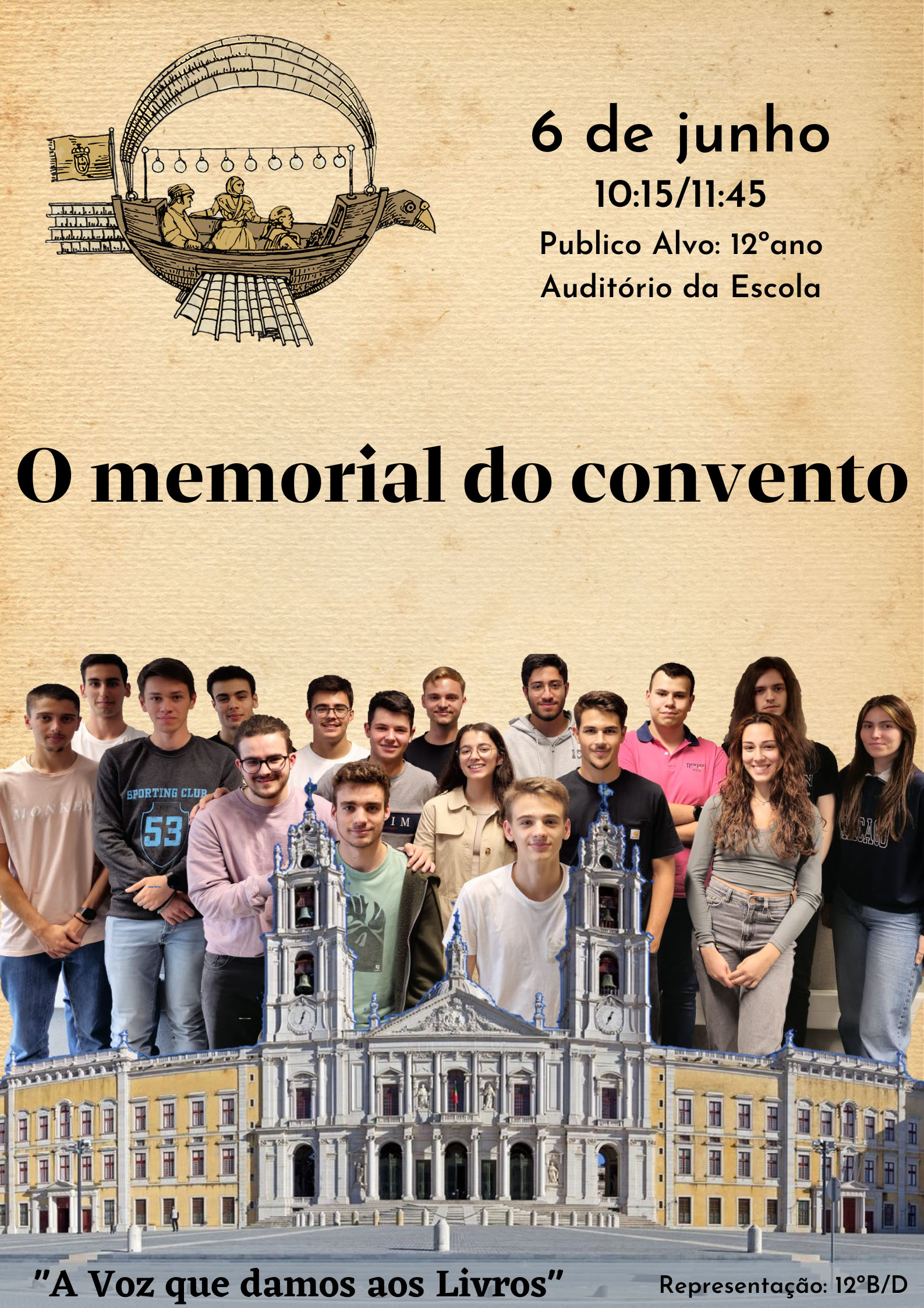 No sentido de consolidar o estudo e estimular a leitura da obra de Saramago, MEMORIAL DO CONVENTO (do programa de português de 12ºano), o projeto "A Voz que damos aos Livros" (coordenado pela professora Conceição Brandão), leva à cena uma representação da obra pelas turmas de 12ºB e 12ºD.