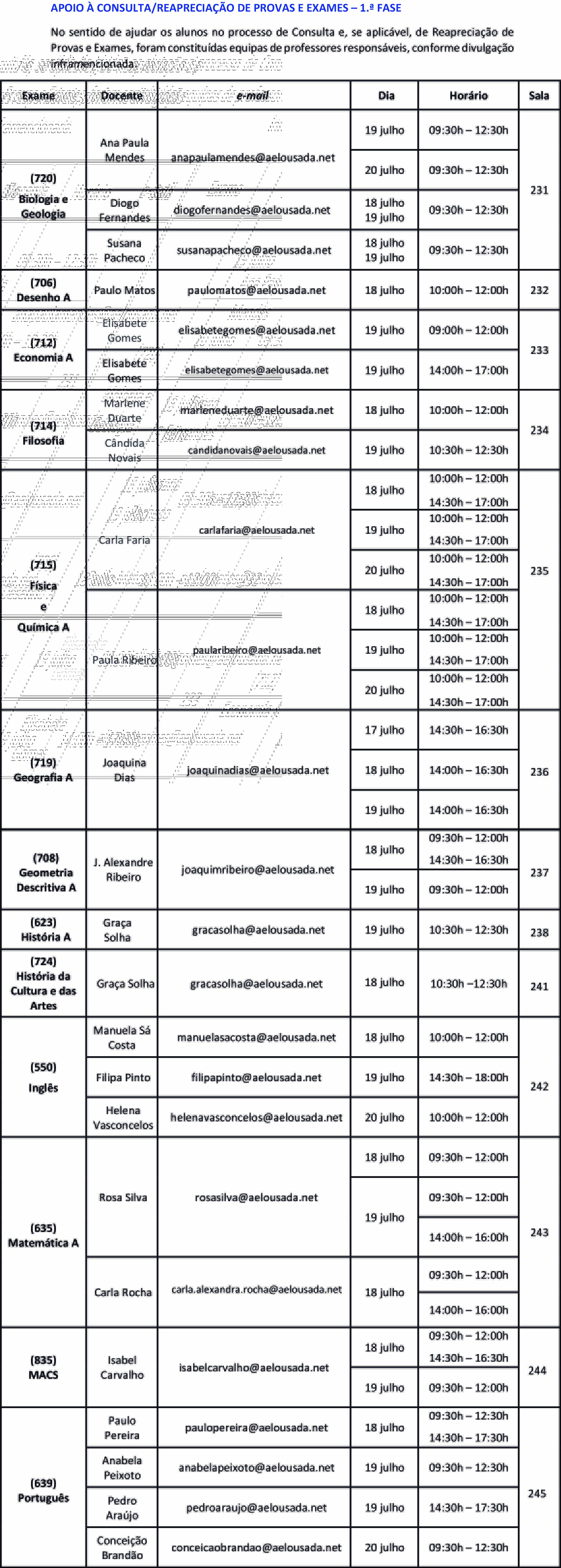 APOIO À CONSULTA/REAPRECIAÇÃO DE PROVAS E EXAMES – 1.ª FASE