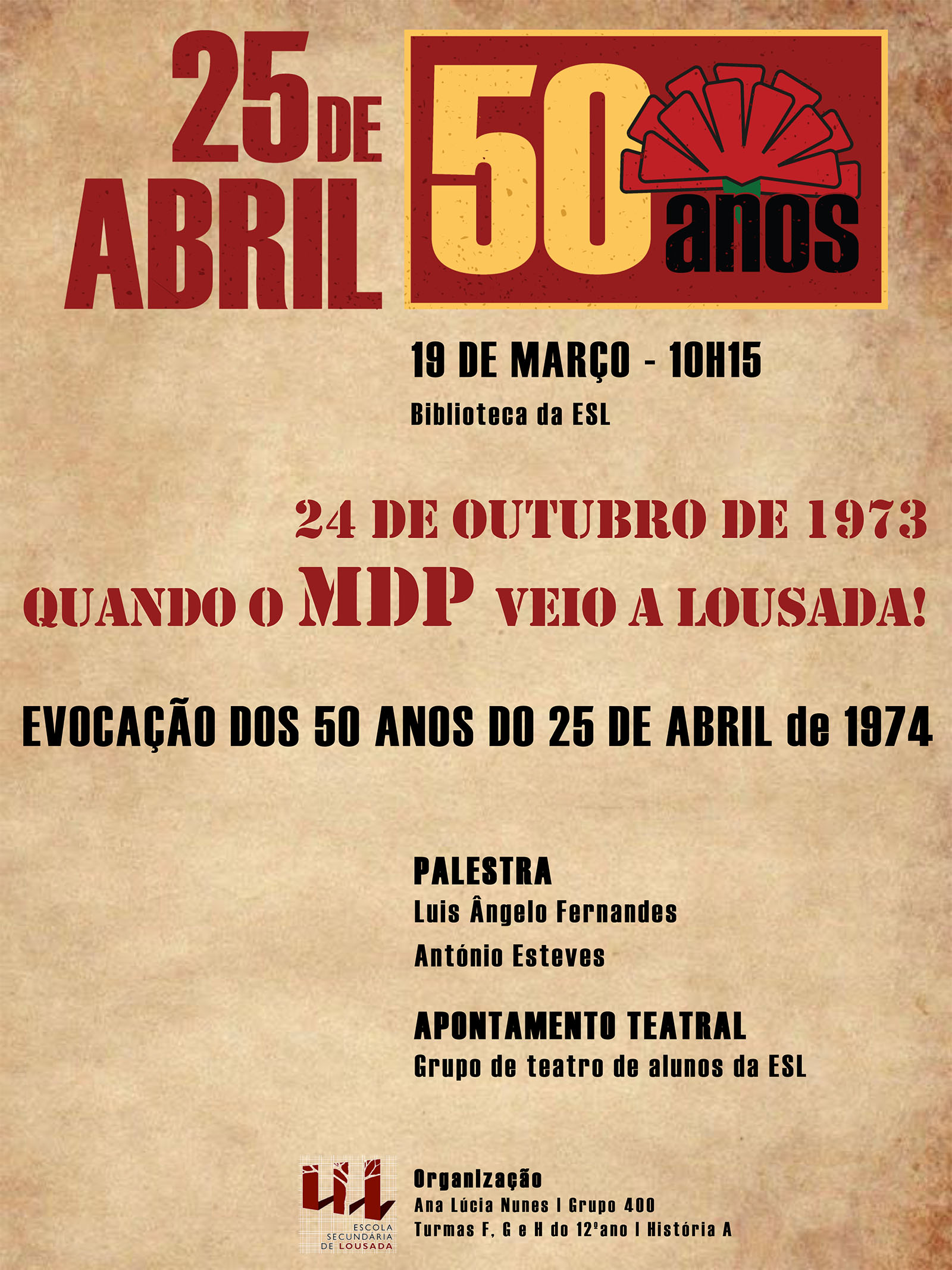No dia 24 de outubro de 1973 realizou-se, no antigo salão dos Bombeiros Voluntários de Lousada, um Comício eleitoral da Oposição Democrática ao Estado Novo, único comício do MDP onde houve carga policial! Como forma de evocar os 50 anos do 25 de Abril, recordamos esse acontecimento, com a presença de dois convidados especiais.