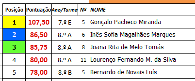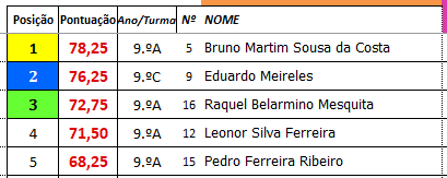 Salientam-se os bons resultados obtidos, tendo como melhores classificados os seguintes participantes: