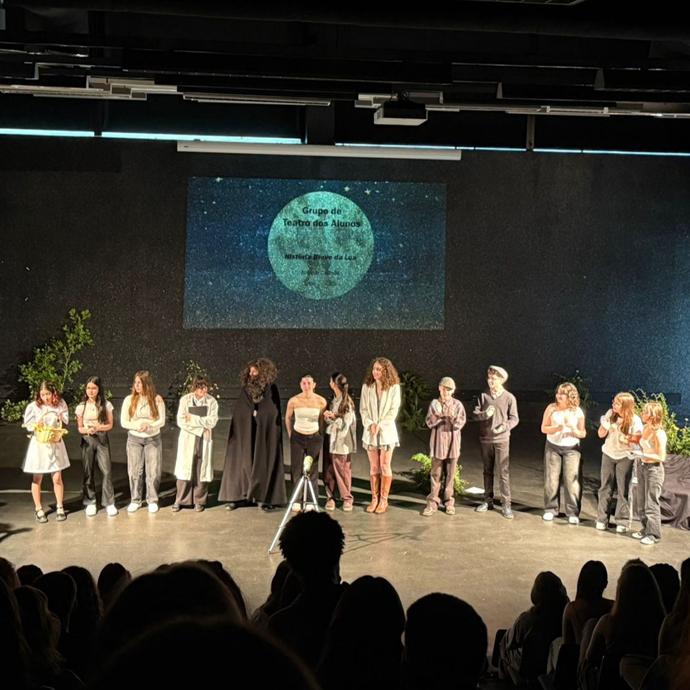 Na quinta-feira, dia 22 de maio, o Grupo de Teatro dos Alunos apresentou uma encenação da peça História Breve da Lua, de António Gedeão, estudada na disciplina de Português, no 8.º ano. A avaliar pelo feedback do público (os alunos das dez turmas do 8.º ano do nosso Agrupamento, alguns professores presentes e outros elementos da comunidade escolar) que assistiu ao evento, o Grupo de Teatro dos Alunos está de parabéns!
