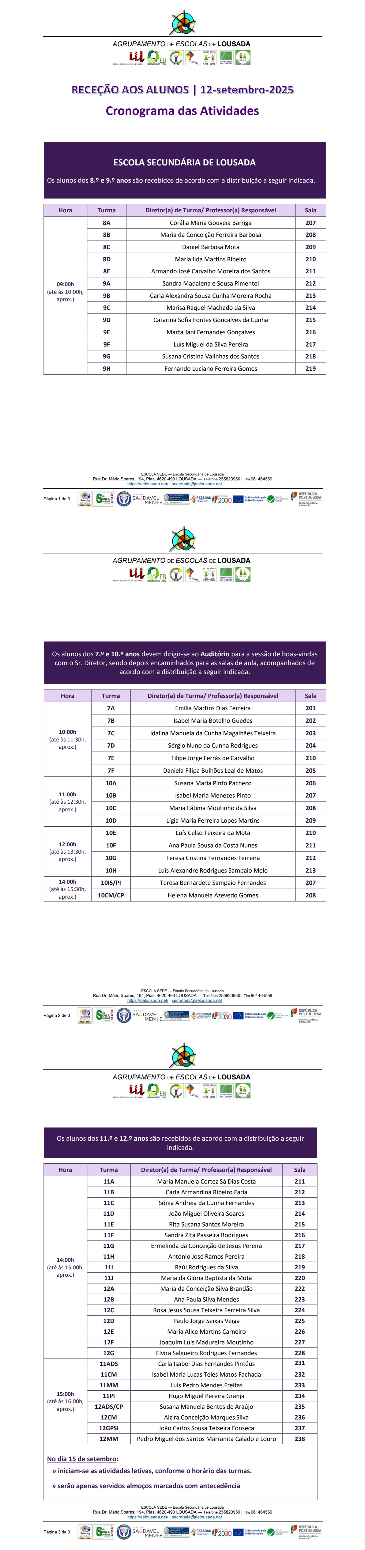 Cronograma das Atividades | ESL - 12 de setembro