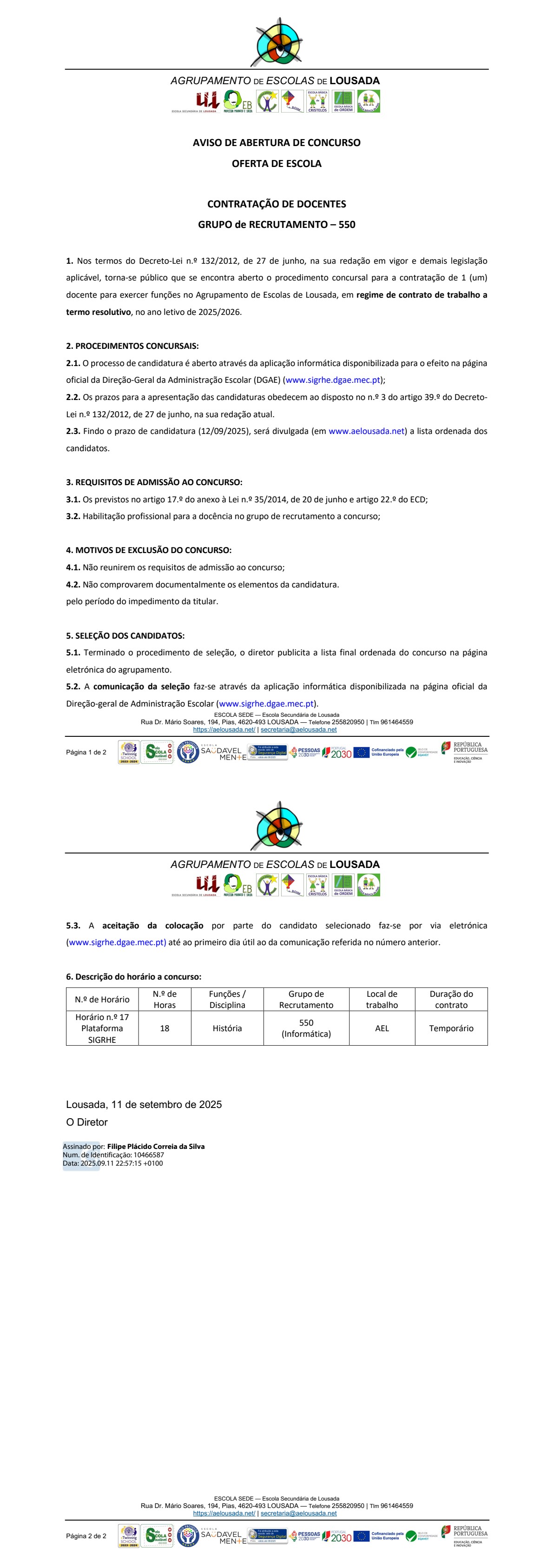 CONTRATAÇÃO DE DOCENTES GRUPO de RECRUTAMENTO – 550