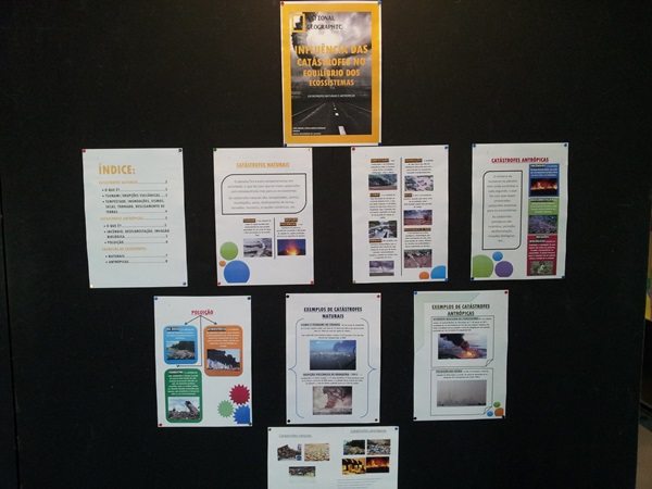 Durante a última semana de aulas esteve patente no átrio-ESL uma exposição de trabalhos realizados pelo 8B no âmbito da disciplina de Ciências Naturais, que tinham sido elaborados aquando da exploração do tema - Compreender a influência das catástrofes no equilíbrio dos ecossistemas.