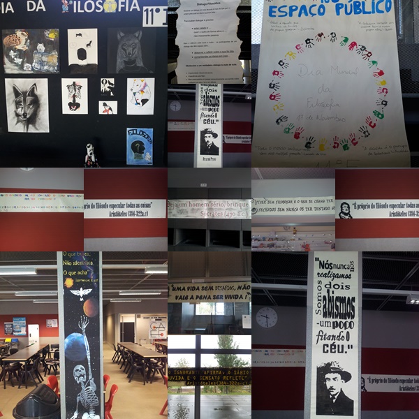 17-nov. - Evidências da evocação do Dia Mundial da Filosofia na ESL, consubstanciada, entre outros, na afixação de frases desassossegadoras do pensamento quotidiano e catalizadoras de reflexão e autoquestionamento.