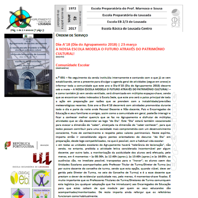 Organização Geral do Dia do Agrupamento'18