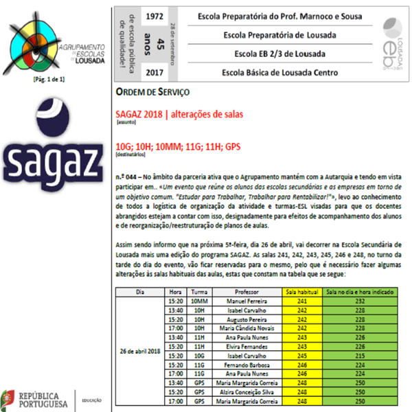 Aviso - Alterações de Salas - SAGAZ 2018