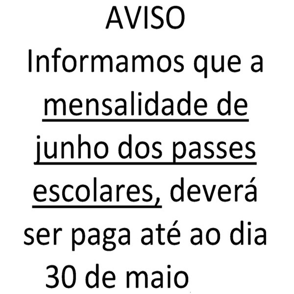 Aviso CML - Pagamento de Passes Escolares de junho