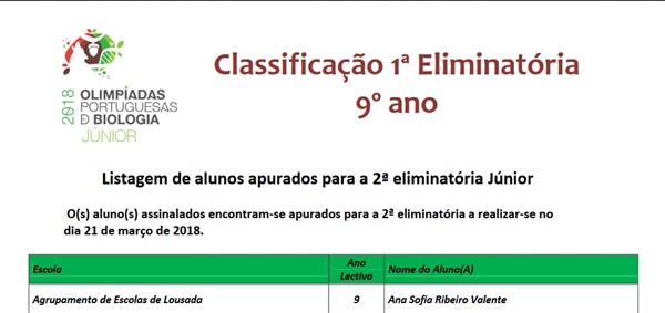 Como se o feito a Matemática não bastasse, a Ana Sofia Valente, do 9E, também foi a nossa única apurada para a 2ª eliminatória das OPB (júnior), que decorrerá já no próximo dia 21-março, pelas 14:30h, na ESL. Duplos parabéns à Ana e que as suas conquistas não se fiquem por aqui, são os votos do Departamento das Ciências Naturais.