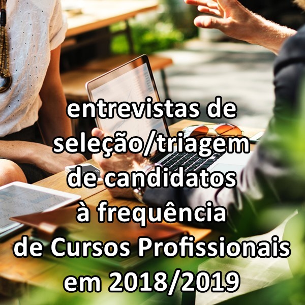 Alertam-se os (alunos) candidatos à frequência de Cursos Profissionais em 2018/2019 que a partir de 2ª-feira (dia 9-jul.) começam as entrevistas de seleção/triagem. Mais se informa que estes candidatos são convocados direta e previamente para entrevista, através dos contactos que forneceram.