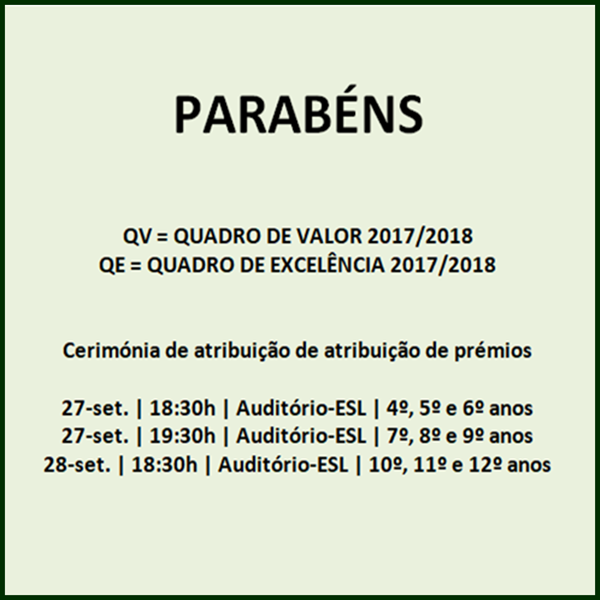 QE = QUADRO DE EXCELÊNCIA 2017/2018