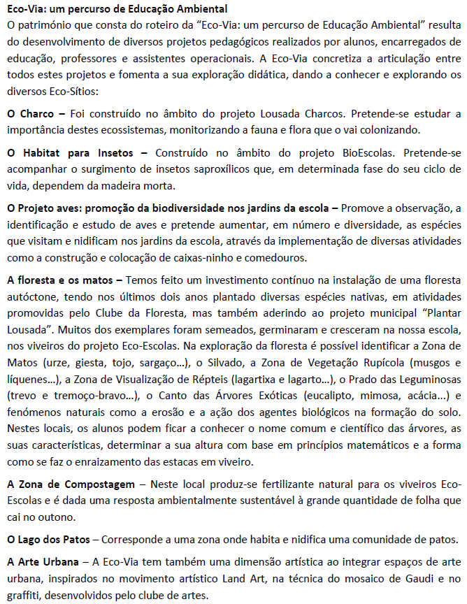 O projeto “Eco-Via: um percurso de Educação Ambiental”, que se encontra em implementação na EBLC, candidatou-se à iniciativa "Escola Amiga da Criança", promovida pela CONFAP (Confederação Nacional das Associações de Pais) e e a EBLC recebeu o Selo de Escola Amiga da Criança, na categoria de Espaços Escolares. A candidatura foi apresentada pelas docentes Ana Morais (Grupo 520), Céu Belarmino (Grupo 230) e Susana Gouveia (Grupo 510).