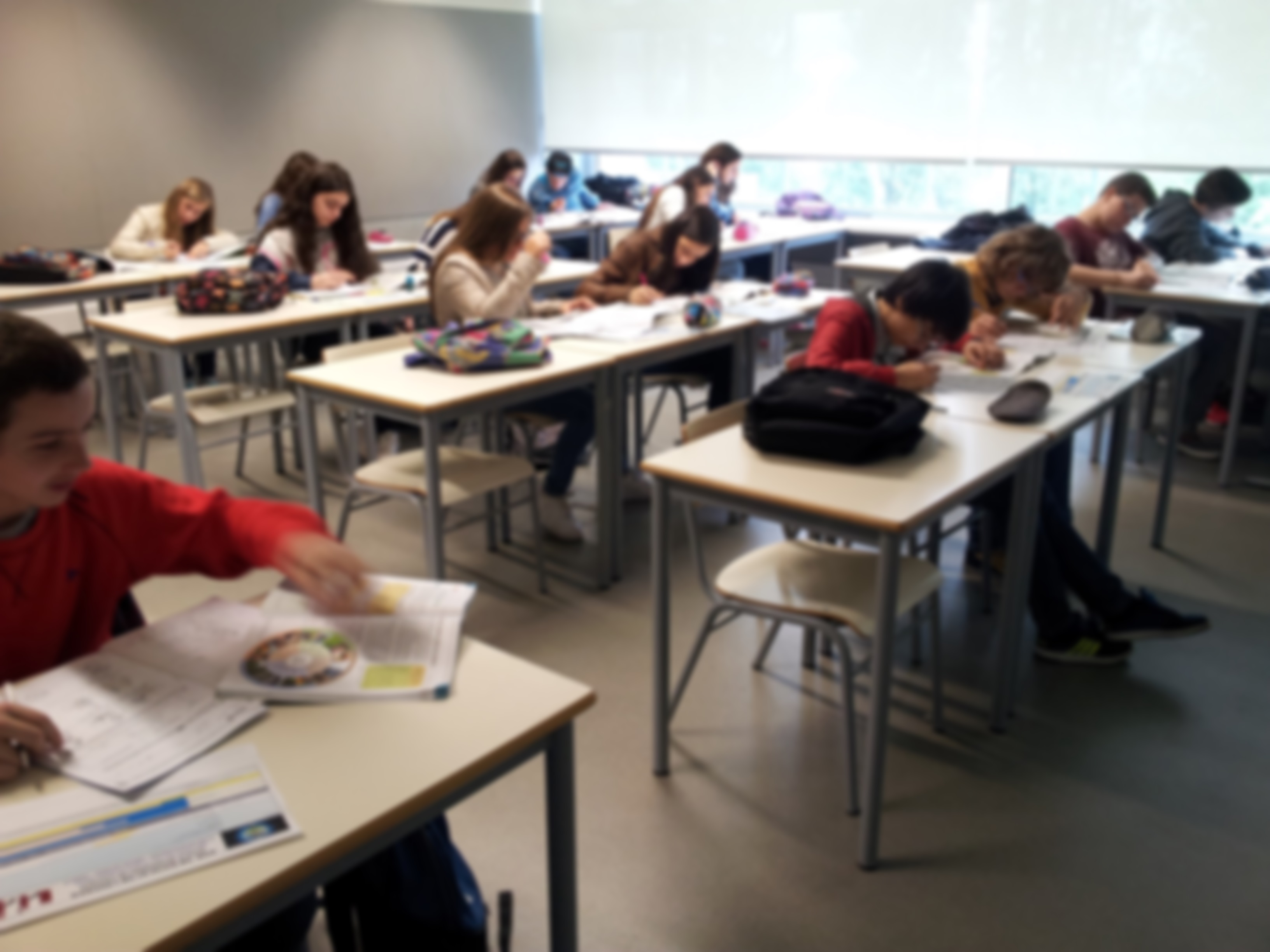 Alunos de 8º ano em aula clássica de livro/papel/lápis, promovendo aprendizagens de Ciências Naturais através da resolução de uma Ficha de Pesquisa-Descoberta-Consolidação, subordinada aos temas "Compreender a Influência das Catástrofes no Equilíbrio dos Ecossistemas" e "Medidas de Proteção dos Ecossistemas".
