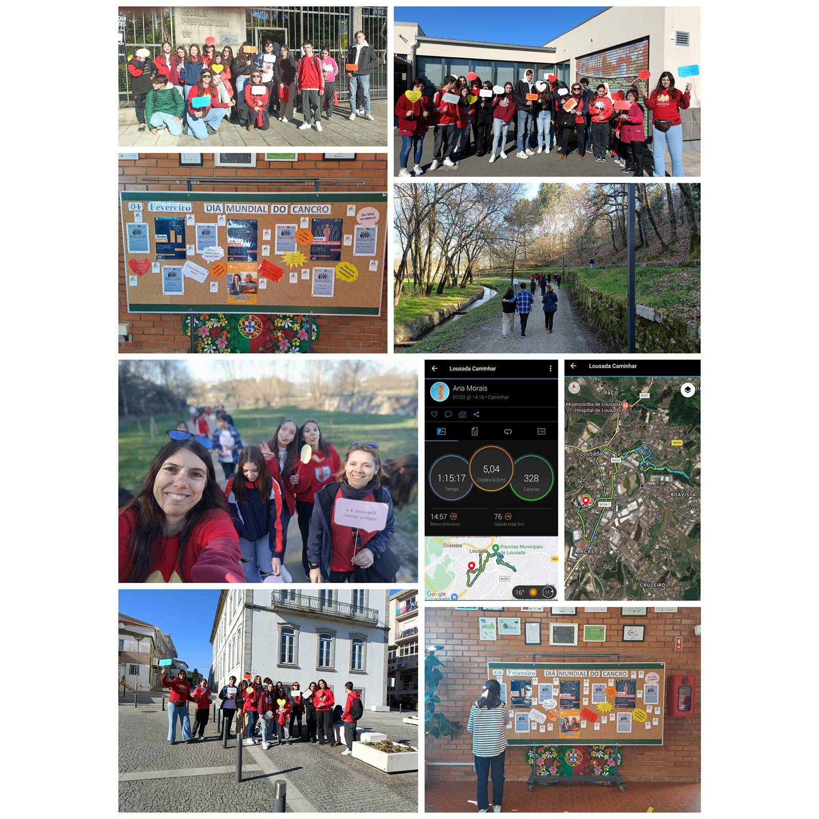 - As turmas do 9ºA_LC e 9ºB_LC, no âmbito das disciplinas de Ciências Naturais e Educação Física, aceitaram o Desafio 5Km. Os alunos e as professoras equiparam-se com roupa adequada à prática desportiva, e caminharam pela Vila de Lousada, com o objetivo de sensibilizar para a prática de exercício físico como forma de prevenir o cancro e chamar a atenção para a necessidade de garantirmos “cuidados mais justos” para todos, já que o cancro afeta todas as pessoas, mas nem todos têm acesso aos cuidados que necessitam.