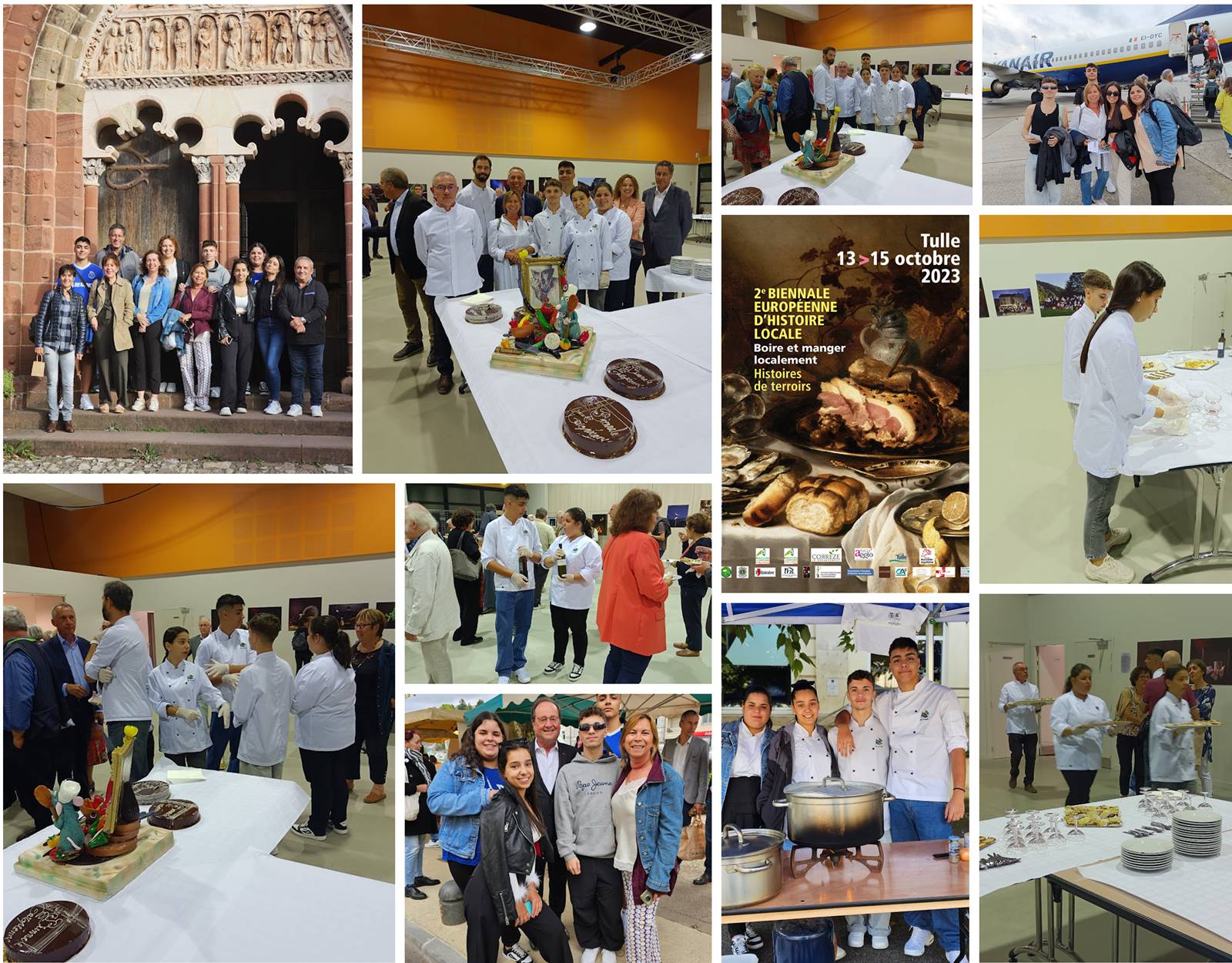 Os alunos número dois, Carolina Martins Carneiro, número três, Cláudia Isabel da Silva Magalhães, número seis, Manuel Henrique Ribeiro Neto e número onze, Pedro Miguel Nunes Ferreira da turma 12º CP estiveram presentes, a convite da Câmara de Lousada, na “ Biennale Européenne D’Histoire Locale” que decorreu em Tulle, entre treze e quinze de outubro, tendo sido acompanhados pela DT e por uma delegação da Câmara. Nas diferentes atividades em que estiveram envolvidos nomeadamente na receção aos convidados e na confeção de um prato português para os visitantes da Bienal, os alunos manifestaram muito empenho e profissionalismo, tendo o seu trabalho sido extremamente reconhecido pelos franceses que nos acolheram. No regresso a Lousada, os alunos foram unânimes em considerar esta experiência muito enriquecedora e gratificante. Toda a equipa, delegação da Câmara, Diretora de Turma e alunos, viveram dias intensos que, certamente, perdurarão nas suas memórias.