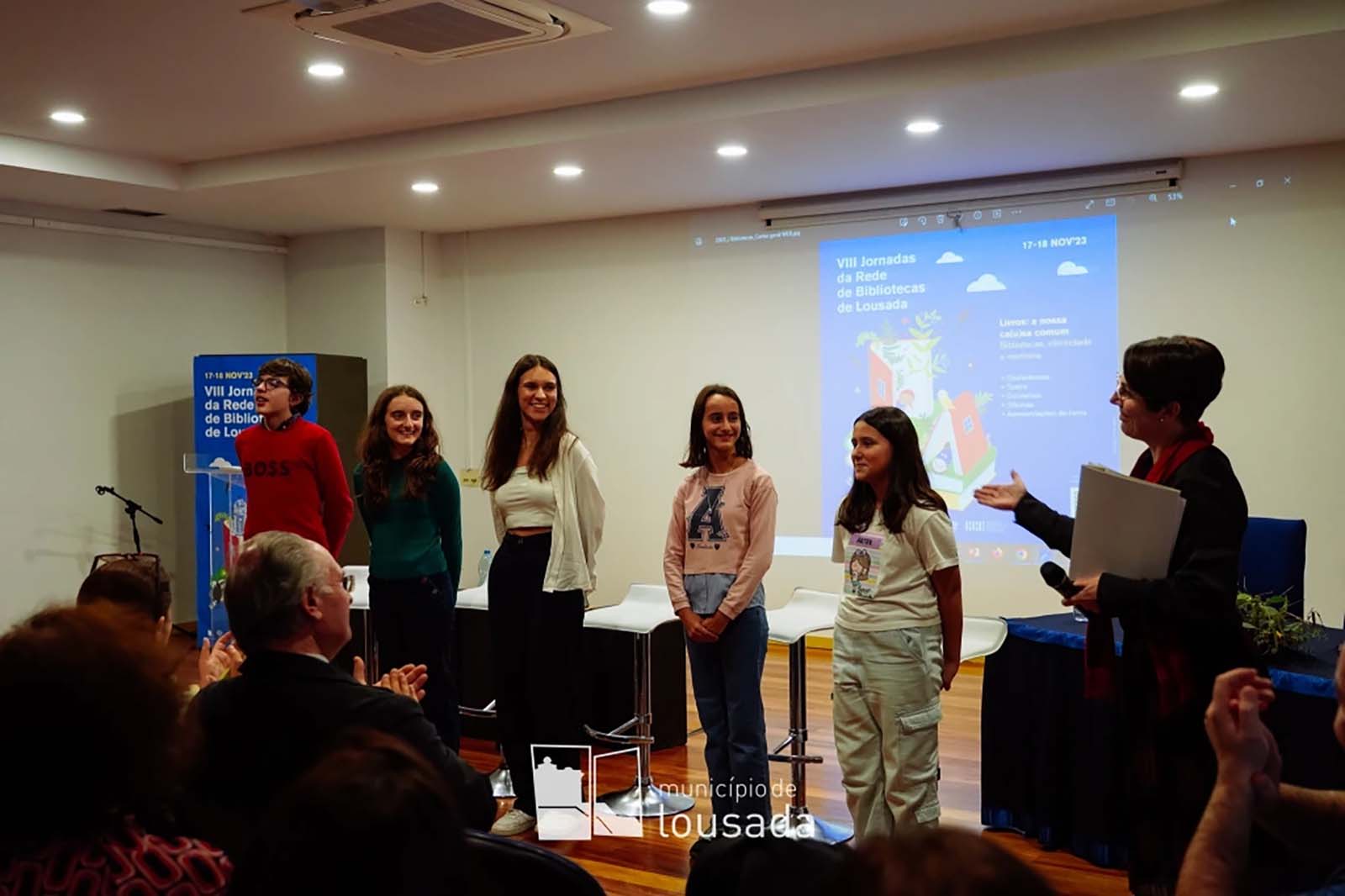 A Aline Leal e Maria Eduarda Mendes, do 5.ºB, o Tomás Moreira, do 6.ºE, a Joana Tomás, do 8.ºA e a Diana Leal, do 10.ºH, leram poesia e encantaram todos os presentes.