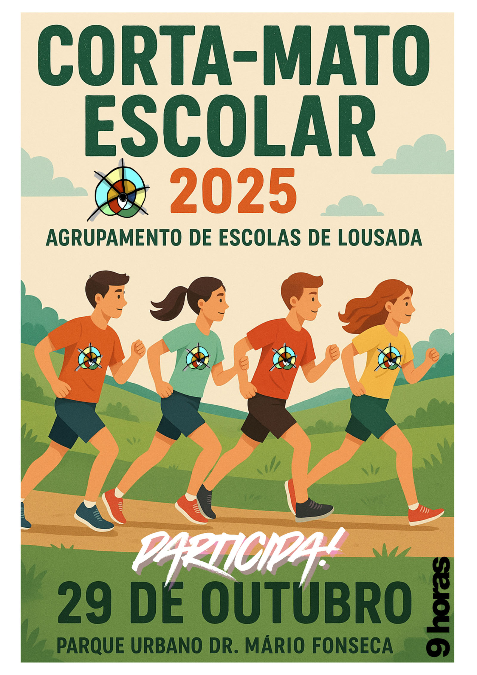 O Grupo de Educação Física do Agrupamento de Escolas de Lousada, convida todos os alunos a participarem no Corta-Mato Escolar, que se realizará no dia 29 de outubro de 2025, no Parque Urbano Dr. Mário Fonseca, pelas 9h00.
