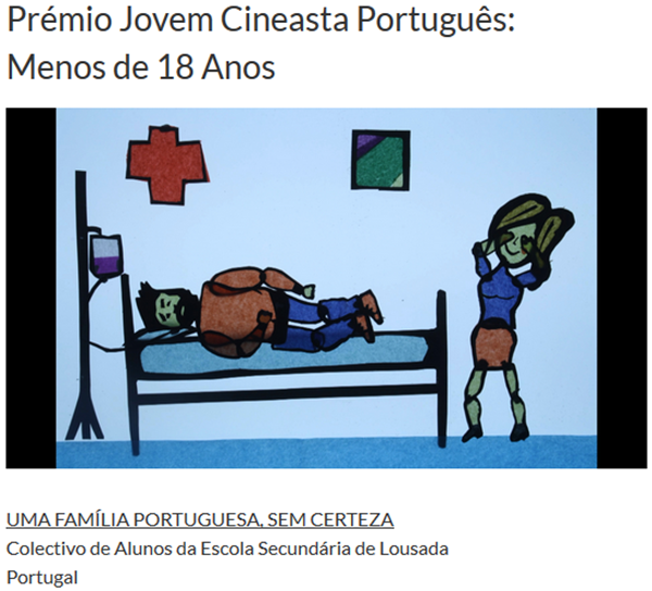 Parabéns - o filme em que participaram alunos do nosso Agrupamento, acompanhados por 2 docentes orientadores, saiu vencedor no concurso integrado no Festival de Animação - CINANIMA 2016. O filme em causa chegou a ser noticiado aqui (no âmbito das comemorações do Dia Mundial da Animação) e a divulgação da atribuição do prémio já pode ser consultada aqui.